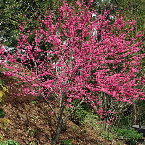 Looking for a redbud that is red/pink rather than the traditional purple/pink? The Appalachian Red Redbud is another beautiful cultivar of our classic native the Eastern Redbud tree with red blooms. It still has the small, clustering flowers that pop out to decorate the branches in early spring, but the blooms emerge in an attention grabbing red/dark pink with flowers that open a brilliant fuchsia-pink. The contrast between these colors is both novel and eye-popping.