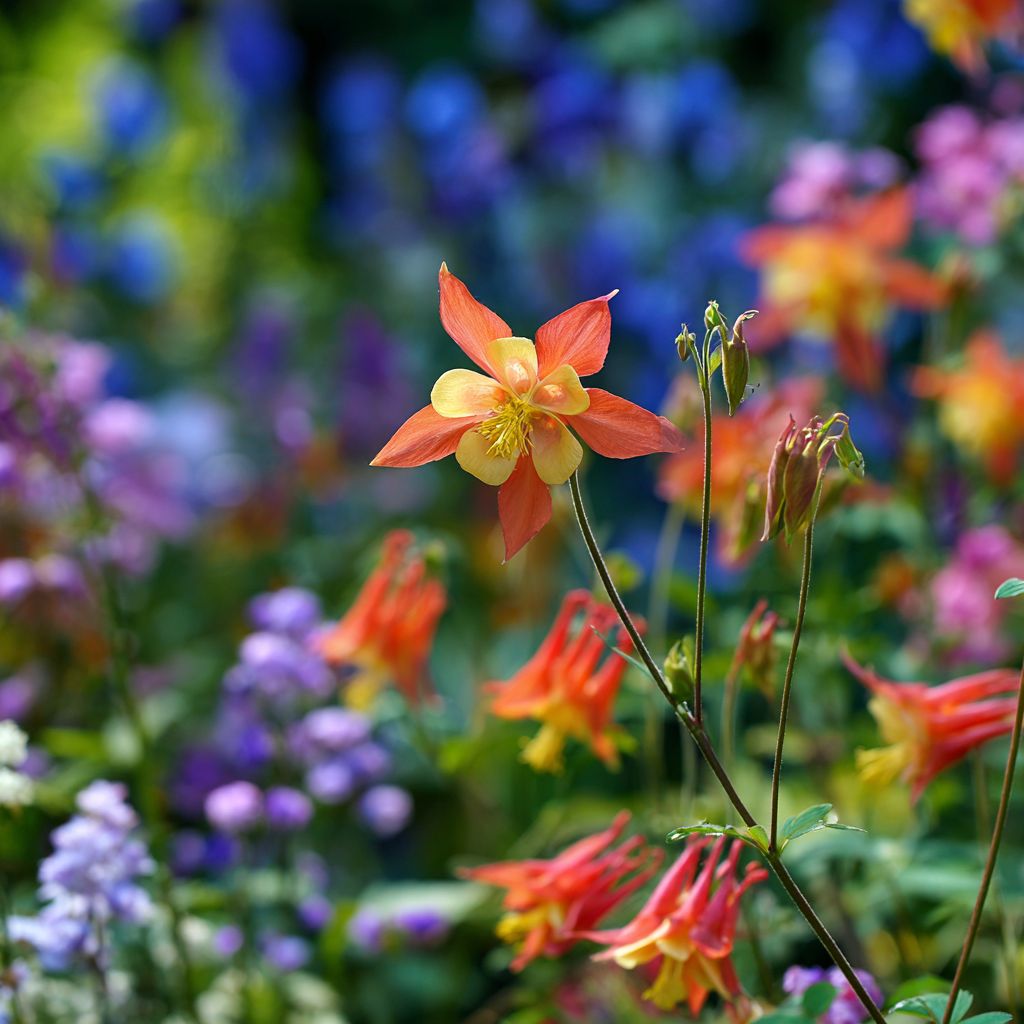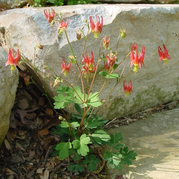 In the garden, Eastern Red Columbine offers exceptional versatility for a wide range of landscape applications and design styles. This charming native excels in woodland gardens, shaded borders, cottage gardens, rock gardens, and naturalized areas where its graceful flowers and fine-textured foliage provide vertical interest and movement in spring. The plant works beautifully when massed in drifts or informal groups, creating a naturalistic effect that mimics its occurrence in wild populations, or it can be integrated into mixed perennial borders where its early bloom season and airy habit complement later-flowering companions. Aquilegia canadensis combines particularly well with other shade-loving spring ephemerals and early perennials such as geranium, foamflower, as well as with ferns that provide textural contrast to the columbine's delicate foliage. The plant's relatively small stature and fine texture make it suitable for tucking into spaces between larger perennials or shrubs, and its ability to self-seed allows it to naturalize and weave itself through the garden in a pleasingly informal manner. This native species proves particularly valuable in pollinator gardens and wildlife landscapes where its nectar-rich flowers provide crucial early-season food sources for migrating ruby-throated hummingbirds returning to northern breeding grounds, as well as supporting native butterflies, bumblebees, and other beneficial insects.