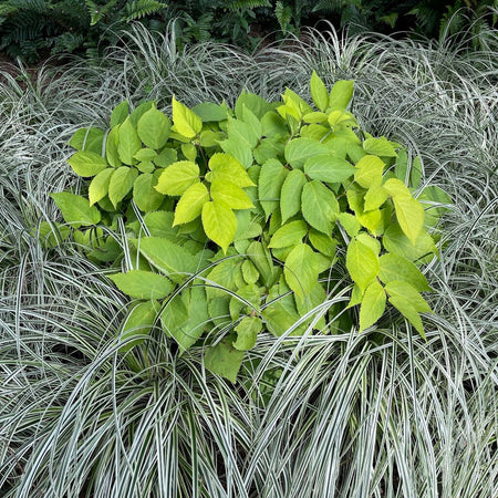 Are you searching for an unusual shade loving plant that can bring layers of color to your garden? Aralia Sun King might tickle your fancy. It thrives in similar conditions to hostas and other woodland perennials, but grows to about 3 ft in height and features tropical-looking golden colored leaves.