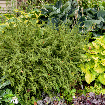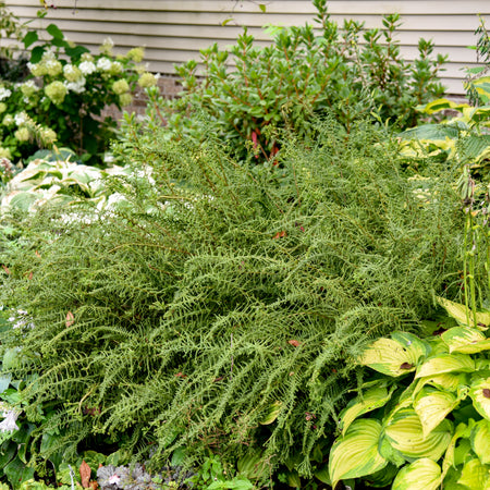 This fern is particularly valuable in shade gardens where its unusual form provides textural contrast to hostas, astilbes, and other shade perennials. It pairs beautifully with spring ephemerals, hellebores, and woodland wildflowers, and its vertical form makes it an excellent choice for adding height and structure to shaded borders. The unique crossed pinnae catch the light in interesting ways, creating subtle plays of shadow and form that add depth to plantings.