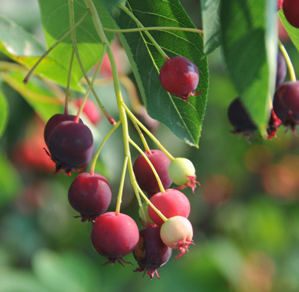 Serviceberry is an outstanding, but still underutilized native tree that has so much to offer. In the early spring, small frilly white blooms adorn the tree giving it showy appeal in a smaller more shrublike package. Berries begin to form and ripen in early summer, which is why many call the tree the Juneberry. These berries are like a blueberry with a small seed in the middle that reminds me of a small sunflower seed. I think the berries are delicious and I prefer them to blue berries for the more mild flavor. Each tree can yield pounds of delicious berry that will power your smoothie maker, cereal bowl or yogurt for weeks. I'm sure they are delicious in baked good as well.