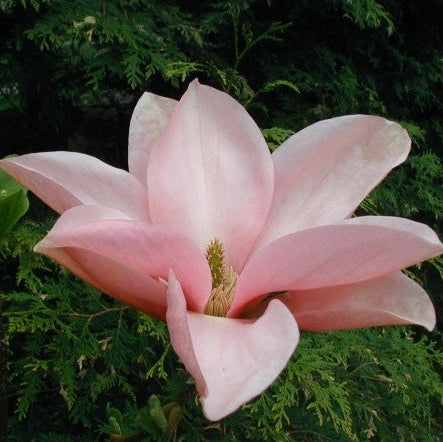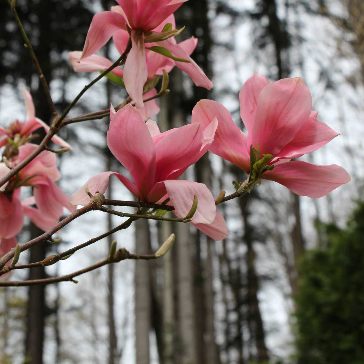 The result of crossing 'Yellow Bird' with 'Caerhays Belle', this cultivar inherits the superior cold hardiness of its 'Yellow Bird' parent (reliably hardy to Zone 4) while capturing the luminous pink coloration of 'Caerhays Belle' [1]. Like many magnolia, the flowers are striking, measuring up to 6 inches across with deep blush-pink exteriors that open to reveal softer pink interiors. The tepals are elegantly narrow, creating a fuller, more refined flower form. Blooms emerge in late spring as the foliage begins to unfold, helping to protect flowers from late frost damage.