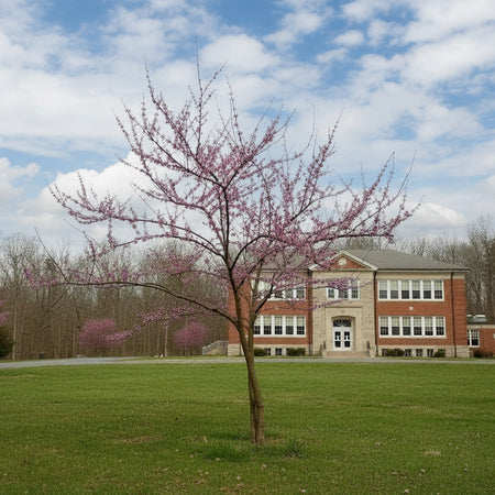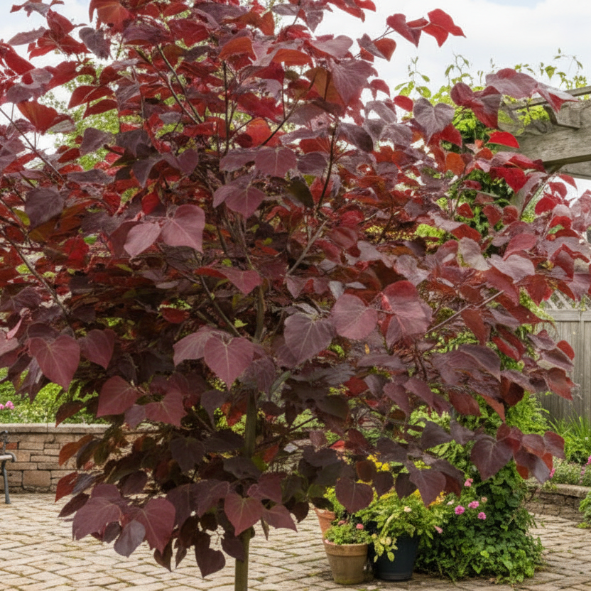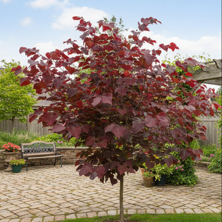 The medium size of Burgundy Hearts lets it function as a great specimen planting in larger spaces, or as a small shade tree in tighter spaces. The complementary purple coloration looks great against either siding and brick homes.