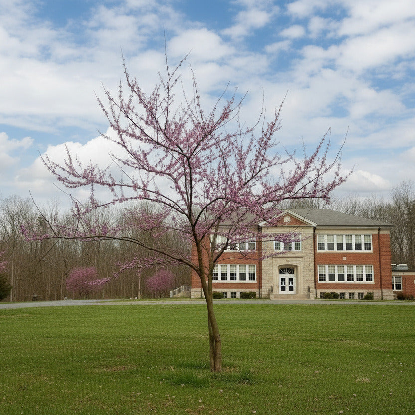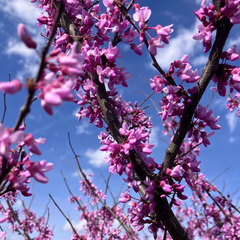 Pruning can be a challenge for new gardeners, so unless you are experienced, we recommend limiting pruning to a few branches each season. Pruning can be done during the winter months, but will rob you of the newest blooms. Pruning can also be done in late spring, after the blooms fade. Try to focus on branches that cross into the tree or create a steep V as these can create rubs, restrain growth on the central leader, and lead to breakage. Prune branches that are lower to the the ground to allow for space under the tree for mowing and and a more tree-like appearance. Most redbuds will grow shoots around the base of the tree, trim these back as low to the ground as possible each season. I've seen shoots grow almost to the size of a small tree within a few months, so get them as early as you can. When pruning take care to prune branches when they are as small as possible and take no more than 1/3 of the branches from a tree in one season.