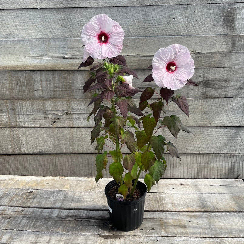 Caring for hibiscus is not difficult, but the plants do require some maintenance. Site selection is important, so plant in an area that receives lots of sun, but also will remain sufficiently moist. Keeping hibiscus well watered will result in the largest and fullest flowers and foliage. Occasional deadheading is recommended to keep the plant looking its best, but isn’t strictly necessary. It is best to plant hibiscus before the heat of summer arrives to give it time to establish and a thick layer of mulch is recommended to ensure soil moisture is maintained. As always, we recommend a hardwood mulch, because it is simply the best for retaining moisture and only improves as it is refreshed each year. Be aware that hibiscus is one of the last plants to arrive each year - so you’ll probably think it is dead and freak out a little bit, but be patient and your patience will be rewarded. Hibiscus is a target for Japanese beetles, since beetle numbers vary from year to year, be prepared to treat them or pick them off regularly.