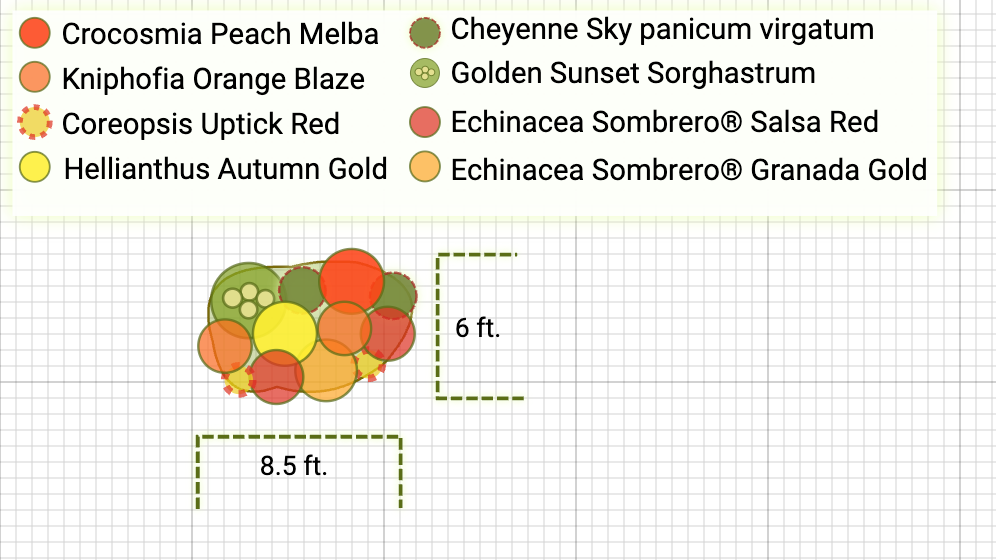 This bold, sunset-inspired garden theme draws from the dramatic hues of Mediterranean skies—fiery golds, glowing oranges, dusty lavender, and deep plum. It creates a warm, exotic feeling while showcasing plants that thrive in full sun. Perfect for bringing vacation vibes home.