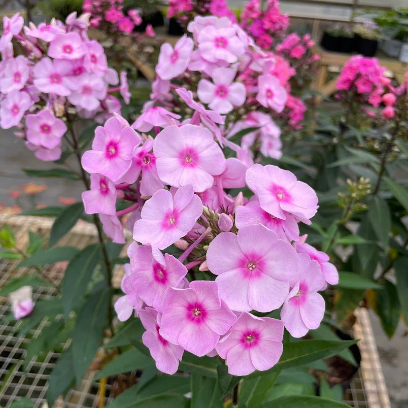 Cotton Candy is a new spin on the classic tall garden phlox soft pink flowers with bold pink centers create a calming effect in the garden. At 2 ft. tall With large panicles of pink flowers at the end of strong green stems it can provide an anchor for any garden and is a great midsized plant. Paired with stronger pinks Cotton Candy serves to blend pallets of purple, white and pink together while allowing the eye time to observe and take in stronger colors. Much like a good rug, it can really "tie the garden together" and may make nihilists recognize that beauty does indeed exist.
