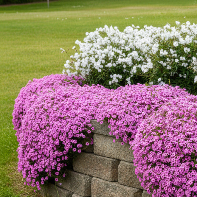 Phlox subulata - creeping phlox - is an easy to grow versatile ground cover for full sun or light shade. Good drainage is essential; it prefers soils with some sand that is PH neutral. Shear back foliage in the early summer after the first bloom as this will create a nice dense foliage through the summer and the occasional rebloom. Can be divided every 2-3 years in the summer following its bloom period.
