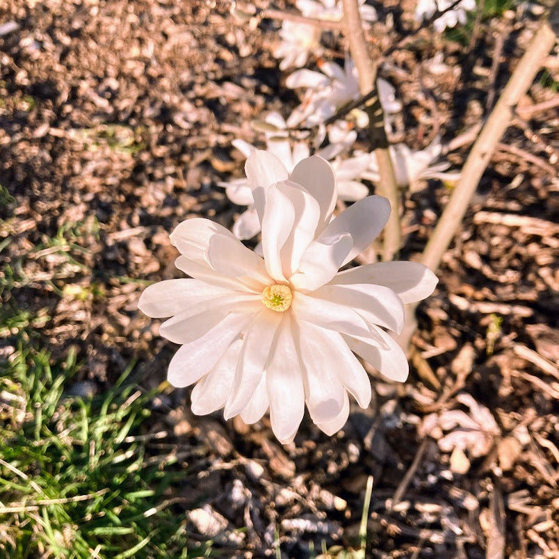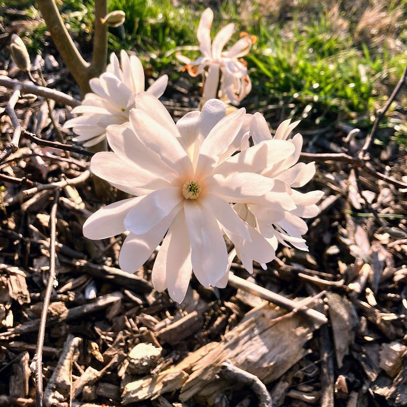 Say goodbye to winter with a profusion of double white 'star' blooms that envelope this tree like stars in the night sky. As other trees are preparing their buds, the Royal Star Magnolia will brighten up your landscape and signal the arrival of spring. The elegant multi-branch structure of this tree creates an open form that looks great as a shrub or or can be pruned into a small specimen tree, making it quite versatile in landscape design. The leaves are deciduous and much smaller than a southern magnolia, but still oblong and slightly glossy. While not spectacular in the fall, the golden color with hints of green is very appealing and compliments bold fall colors and hardscaping well.