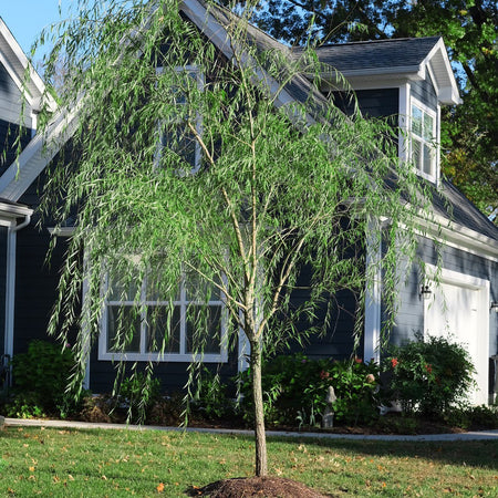 There is nothing more picturesque then a warm summer breeze blowing through the branches of a willow. The long, narrow leaves seem to cascade off of the branches and are the trademark beauty of this tree. The weeping willow has a wonderful natural form and is often used as single specimen shade tree due to their large size and spread. They thrive near water, so they add charm to low land areas, or any body of water.